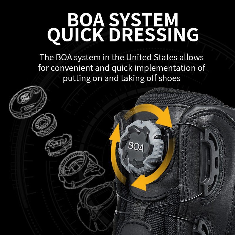 System BOA ułatwia zakładanie i zdejmowanie: szybkie przekręcenie w celu dokręcenia i pociągnięcie w celu zwolnienia. Bez sznurówek i bez kłopotów.